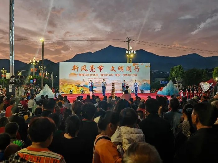 四川文明网攀枝花讯(攀枝花市文明办)重阳敬老情意浓,文明新风暖人心。10月29日晚,由攀枝花市委宣传部(市文明办)主办,米易县委宣传部(县文明办)、中共米易县攀莲镇委员会承办的“新风亮节·文明同行”——攀枝花市2025年“我们的节日·重阳”传统节日活动,在米易县攀莲镇水塘村湿地公园休闲广场温情启幕。活动以颐乐善集、敬老宴、文艺汇演、登高体验等为核心,吸引了辖区上千名居民热情参与,现场欢声笑语不断,敬老爱老氛围浓厚。