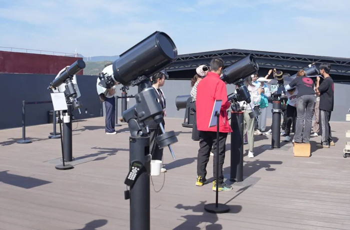 近日,仁和区平地镇迤沙拉星空观测科普示范教育基地内,阳光澄澈,暖意融融。得益于当地得天独厚的地理优势,这里一年四季大气稳定、晴空率高、光污染小,是探索宇宙奥秘的绝佳窗口。当天,一支外地研学团队正围在观测设备旁,在导师的指导下调整日间观测角度,仔细观察太阳表面活动,过程中不时讨论:“望远镜能观测到多暗的星体?”“大气稳定的话,观测会更准吗?”基地内,27个专业观测机位井然有序,科研级的600毫米口径双曲面反射镜等设备静立其间,让原本抽象的天文知识变得生动可感。