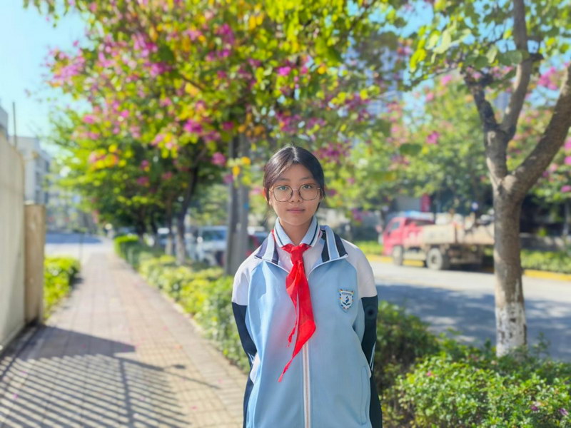 她是一位环保卫士,出门随身装着垃圾袋,看到路边的烟头、纸屑就弯腰捡起。带动父母成立“绿色环保小分队”,周末带着宣传册到公园、小区宣传环保小知识,教小朋友用“颜色分类法”分辨可回收物。给居民演示“厨余垃圾变肥料”的小实验;春天组织邻居“认养树苗”,给每棵树挂上名字牌,定期浇水修剪;将闲置的书籍和衣物整理成“爱心包裹”寄给山区学校。作为学习委员,为帮助基础薄弱的同学,组建“学习帮扶小组”,整理知识重点,利用课余时间帮助他们进步。征文作品《以青春之我,担文化之责》获攀枝花市“‘担当文化使命·青年强国’读书教育活动”初中组二等奖。连续两年获评校、市级“三好学生”。