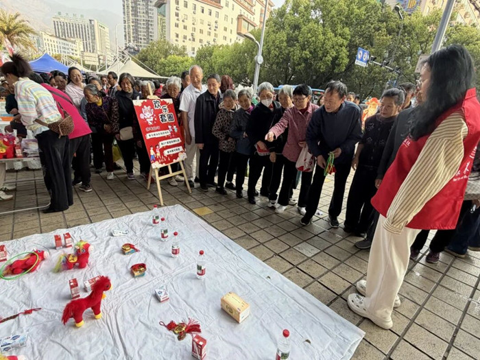 活动现场设立了“志愿集市”,为市民提供免费义诊、科普宣传、非遗特色文创产品展示和制作、心肺复苏实操教学、消防器材使用等便民服务和使用技能。