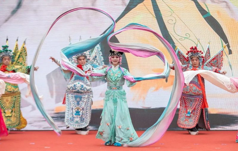 活动现场暖意融融、氛围热烈,闻讯而来的村民和游客纷纷驻足,共同欣赏这场家门口的“文化大餐”。活动在丰富精彩的歌舞艺术中拉开帷幕,川剧集锦《蜀戏川韵》率先登台,生旦净丑各展风采,唱腔婉转悠扬、身段灵动飘逸,水袖翻飞间尽显川剧的独特韵味与本土文化底蕴。紧接着,《采茶舞》《市委八届十二次全会召开了》《爱永在》《涪水欢歌》等10余个节目轮番亮相,从歌曲到相声,从民俗舞蹈到音乐快板,生动讴歌了新农村建设的蓬勃气象,热情展现了基层群众勇挑重担、实干兴乡的精神风貌,赢得了现场观众阵阵掌声。