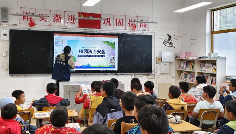 专题普法,贴心讲解增实效。宝兴县实验小学法治副校长将“开学第一课”融入开学典礼,聚焦校园安全,围绕“防范校园暴力、网络诈骗与性侵”等核心内容举办法治专题讲座。各班级还在班主任的组织下开展了“安全第一课”主题班会,通过播放法治安全教育视频、组织讨论、法治互动问答等形式,切实增强学生安全意识与自我保护能力,为营造安全、和谐的校园环境奠定基础。