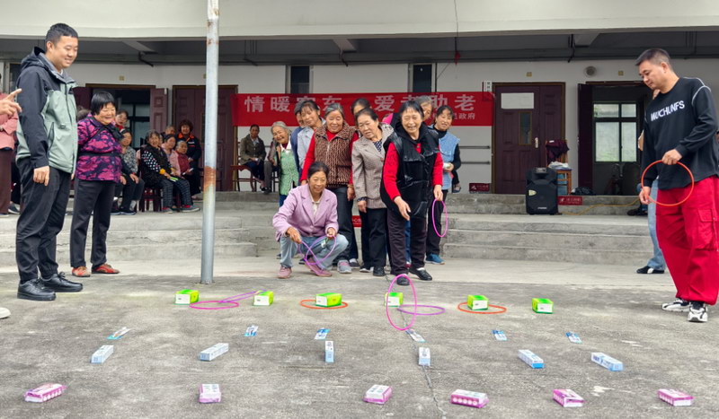 活动中,天罡村文艺志愿服务队为老人们献上舞蹈表演,镇干部、驻镇消防队、镇卫生院为老人们宣传讲解了农保、医保、高龄补贴、老年助餐点服务、消防安全和健康教育等政策知识,老年人积极踊跃参加套圈、投壶等有奖互动小游戏,现场氛围异常欢乐喜庆。