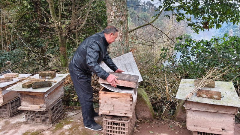 天目村坐落在老峨山北麓,85%以上的森林覆盖率、年均15℃的温润气候,让漫山野樱、乌桕、枇杷等山花成为蜜蜂的天然粮仓,也为养蜂业埋下了得天独厚的根基。1983年分田到户后,温饱问题得以解决的陈泽普,萌生了靠养蜂增收的念头,从此与这群“采花使者”结下不解之缘。