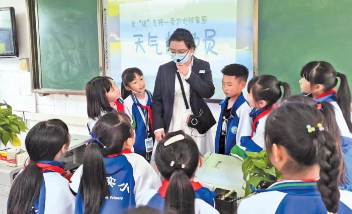 “天气总动员”互动课堂上,雅安科技馆、雅安市气象局联合学校围绕天气知识与低碳理念开讲,让科普环保种子在孩子们心中萌芽。杨鑫 摄