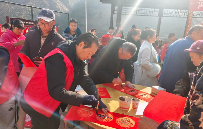 四川文明网雅安讯(汉源县文明办)为弘扬中华优秀传统文化,营造喜庆祥和的春节氛围,丰富群众精神文化生活,2月5日,汉源县河南乡新时代文明实践所在河南村小区广场举办河南乡2026年春节文化惠民趣味活动,并邀请汉源县书法家协会老师为全乡群众写春联、送福字,共计500余名群众参与其中。