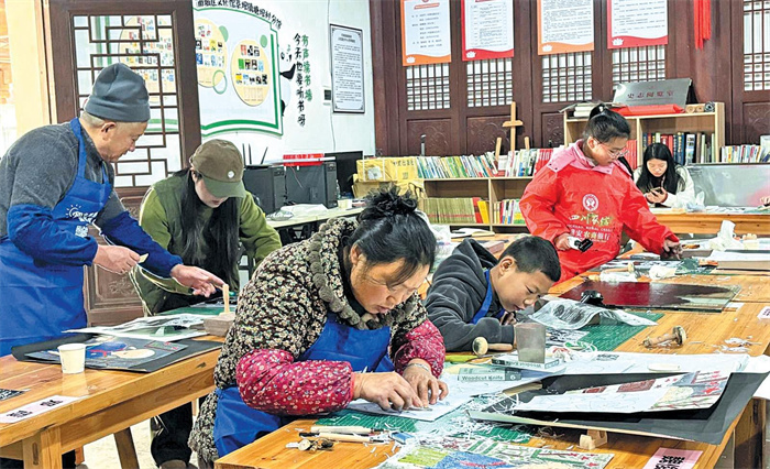 唐霖看着女儿认真的侧脸,感慨道:“村里的公益版画学习班把我们都聚到了一起。这不仅是学一门手艺,更是一种高质量的陪伴。”