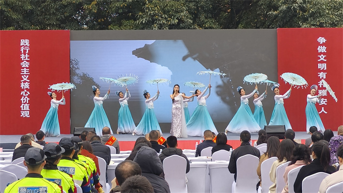 活动在开场节目《美丽中国走起来》中拉开帷幕。启动仪式上,正式发布了雅安市2026年“践行社会主义核心价值观 争做文明有礼雅安人”主题宣传教育活动全年内容,紧扣纪念红军长征胜利90周年主线,涵盖“纪念中国工农红军长征胜利90周年群众性文化活动”“乐进万家·爱在雅安”文明实践系列活动、文明风尚行动、文明乡风建设系列活动、“感动雅安”道德模范评选、“我推荐我评议身边好人”活动、道德模范身边好人工作室建设、家庭文明建设系列活动、未成年人“扣好人生第一粒扣子”主题教育实践活动等多项内容。通过形式多样的载体,将社会主义核心价值观融入市民生活,全方位提升城市文明程度。
