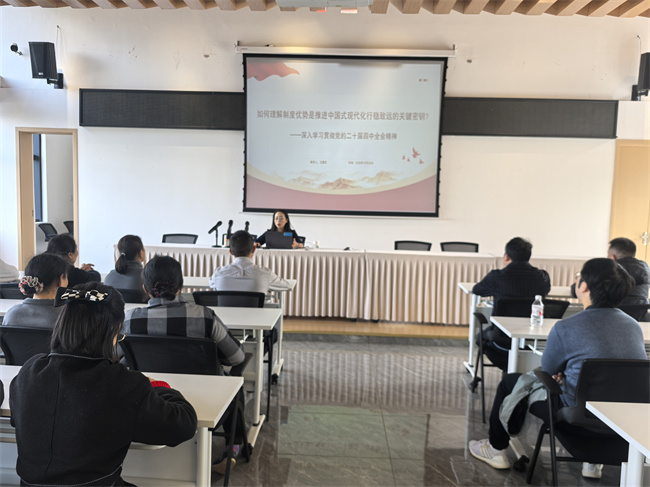 结合学习贯彻党的二十届四中全会精神,西南财经大学马克思主义学院的袁上副教授、许鹏讲师、王夏杰讲师分别以《以中国式现代化全面推进中华民族伟大复兴》《如何理解实现社会主义现代化是一个阶梯式递进、不断发展进步的历史过程?》《如何理解制度优势是推进中国式现代化行稳致远的关键密钥?》为题,从翠屏区情切入,围绕“准确领会党的二十届四中全会精神”“深刻把握党的二十届四中全会精神核心要义”“深刻认识制度优势对中国式现代化的保障作用”“更好发挥制度优势以谱写中国式现代化新篇章”四个方面,对全会精神进行了系统阐释和深入解读。