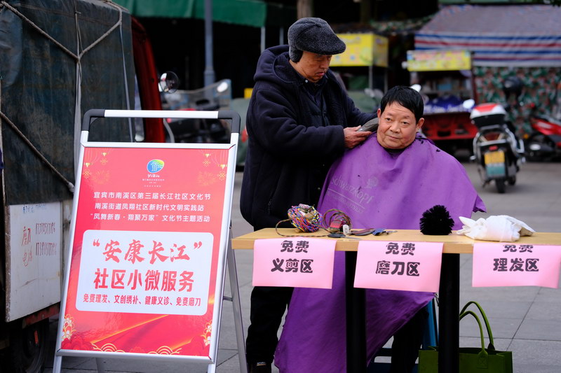 聚焦居民实际需求,社区在活动现场设立“安康长江”便民服务专区,提供免费理发、磨刀、绣补、义诊四项贴心服务。理发师耐心细致地为老年人修剪发型,磨刀师傅将居民送来的刀具打磨得锋利如新,绣补艺人用巧思修补衣物破损处,医护团队则为居民提供血压测量、健康咨询、用药指导等服务。志愿者们热情周到的服务赢得居民一致好评,累计服务超300人次,用实际行动践行“我为群众办实事”的理念,让便民服务真正走进千家万户。