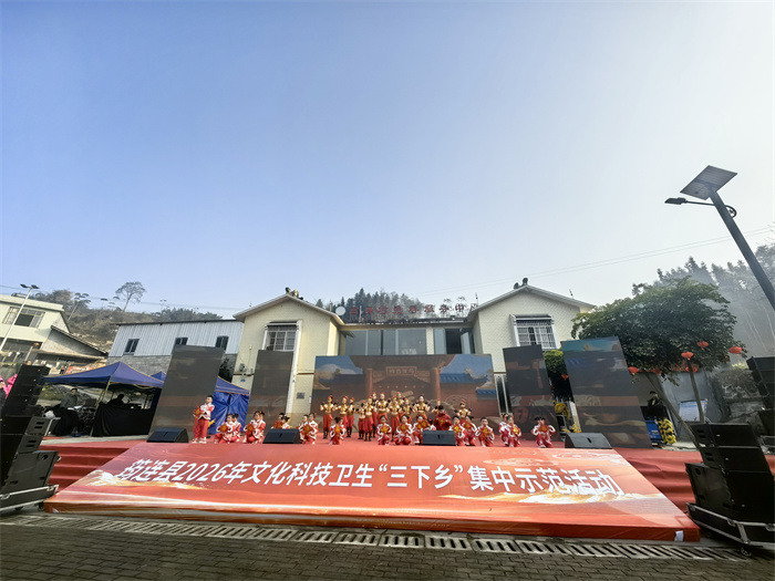 四川文明网宜宾讯(曾洪波)文化惠民暖人心,科技助农促振兴。2月6日,宜宾市筠连县2026年文化科技卫生“三下乡”集中示范活动在大雪山镇高峰村热闹启幕,多部门联动将政策宣讲、文艺演出、志愿服务、健康义诊等“精神食粮”与“便民服务”送到群众“家门口”。县人大常委会副主任熊平到场宣布活动启动。