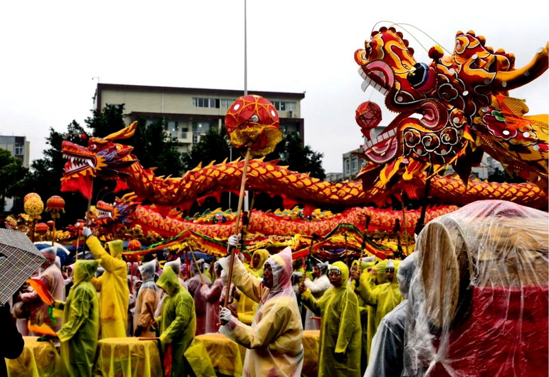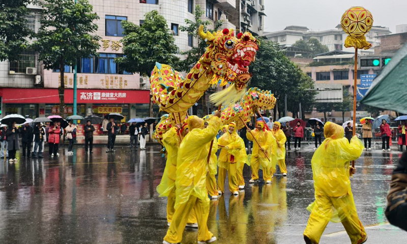 巡游现场,13条形态各异的巨龙在细雨中翻腾起舞,时而盘旋上升,时而俯冲疾驰,龙身蜿蜒起伏,尽显“龙腾盛世”的磅礴气势;红黄相间的醒狮憨态可掬,腾、挪、闪、扑等动作行云流水,每一个精彩瞬间都赢得现场观众阵阵喝彩。