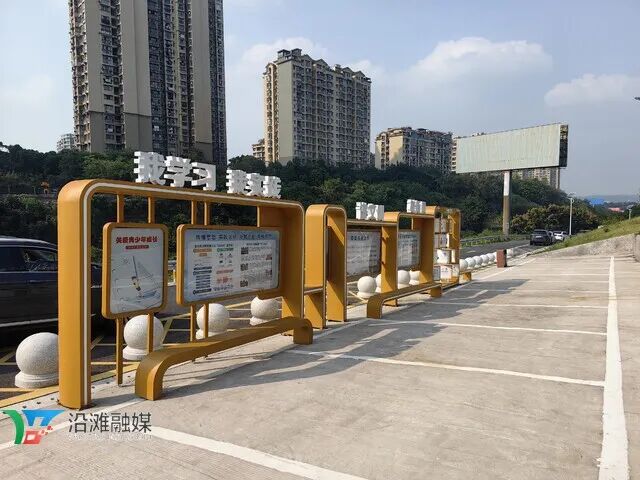 公园在家长等候区贴心设置休憩座椅,座椅旁陈列着市民公约、公益广告及文明知识宣传展板,更搭配可更换的24节气科普小展牌,让学生家长等候之余便能沉浸式学习文明知识。步道延伸而下,关爱未成年人主题景观错落分布,道路安全、食品安全等公益广告宣传内容随处可见,让文明理念融入游园的每一处细节。