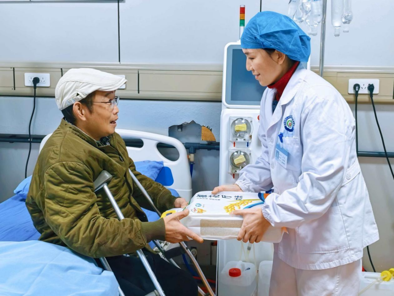 “他心里的坎,比身体的病更难跨。”高双双至今记得第一次见到姜大哥的模样。从那天起,科室的医护人员便多了一份“心”任务。透析时,医生们不仅密切监测他的身体各项指标,一次次精准调整治疗方案,还会主动坐在他身边,聊家常、谈生活;护士们则默默记着他的喜好,透析结束后帮他拎起药袋,扶他到科室门口的长椅上休息。日子久了,姜大哥紧锁的眉头渐渐舒展,开始主动和医护人员打招呼,甚至会分享家里的小事。