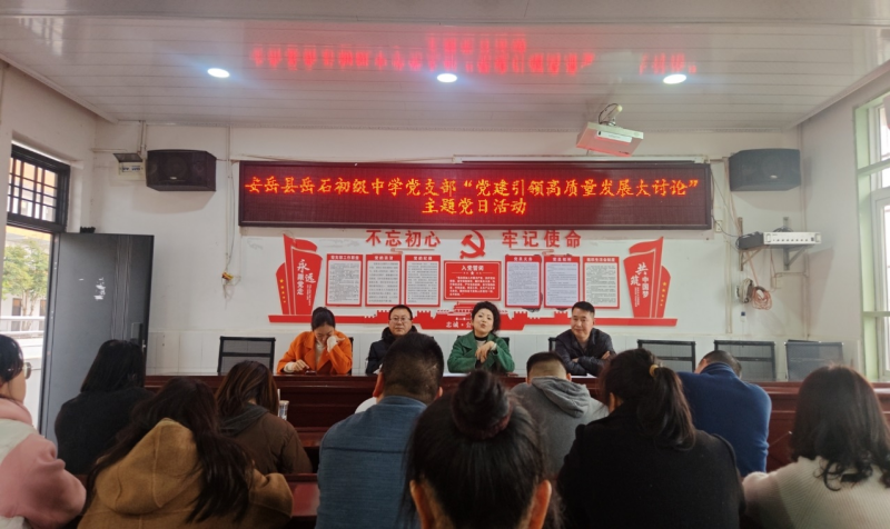 为深入贯彻落实市委、县委及教育工委关于“党建引领高质量发展大讨论”活动部署要求,近日,资阳市安岳县岳石初级中学党支部组织全体党员开展主题党日活动。活动紧扣“资阳是个好地方”“短板弱项在哪里”“实现目标怎么干”“党建引领促发展”四大讨论主题,结合学校办学实际开展深入研讨,进一步凝聚党建引领教育高质量发展的思想共识,激发党员教师干事创业活力。
