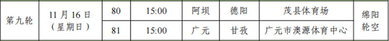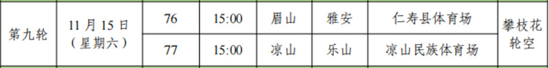 “川超”第9轮赛程表
