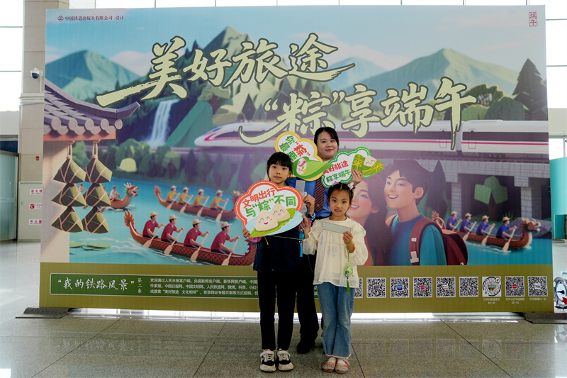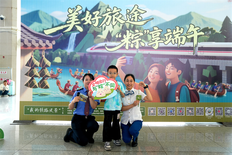 此外,候车厅设立的“文明新风小站”同样人气十足。数百道涵盖端午节起源传说、二十四节气智慧、铁路安全常识和文明出行规范的知识问答题目,激发了旅客的参与热情。答对者获得寓意吉祥安康的端午五彩绳手链,让这份传统守护伴随漫漫旅途。