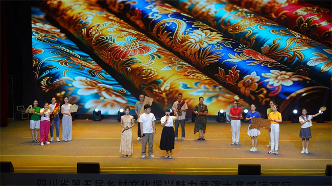 本土原创添彩,非遗焕发新活力。在威远这片充满文化底蕴的土地上,省级非物质文化遗产“石坪山歌”传承人崔永宏率艺术团带着对传统音乐的热爱与传承使命,倾情献唱《石坪情歌》《山歌唱起的地方》《无花果》三首原创作品。作品在保留传统山歌韵味的基底上,创新融入现代表演形式,既唱响深沉家国情怀,又生动诠释威远无花果特色产业魅力,让古老非遗在当代舞台上焕发夺目光彩。