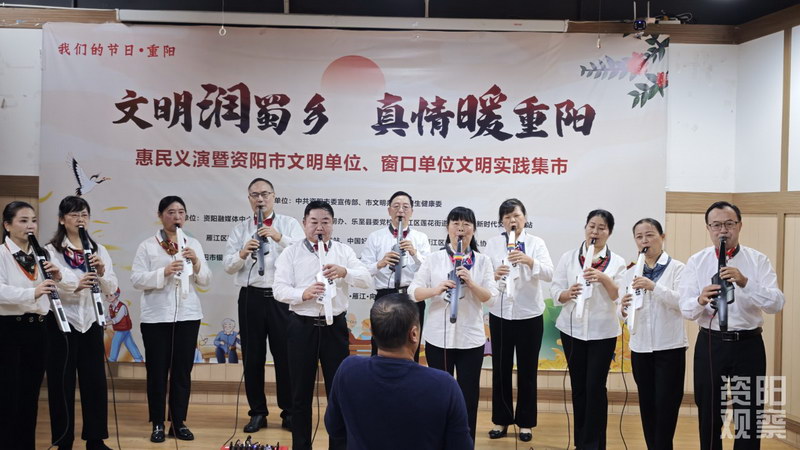10月23日上午,资阳市雁江区莲花街道向阳社区新时代文明实践站热闹非凡,音乐声、欢笑声与问候声交织,“文明润蜀乡·真情暖重阳”惠民义演暨资阳市文明单位、窗口单位文明实践集市在此温情开启。这场由市委宣传部、市文明办、市卫健委联合市、区相关部门,以及文明单位、窗口单位和相关社会组织共同举办的活动,把文化演出与便民服务送到老人“家门口”,让重阳佳节的温暖浸润人心。