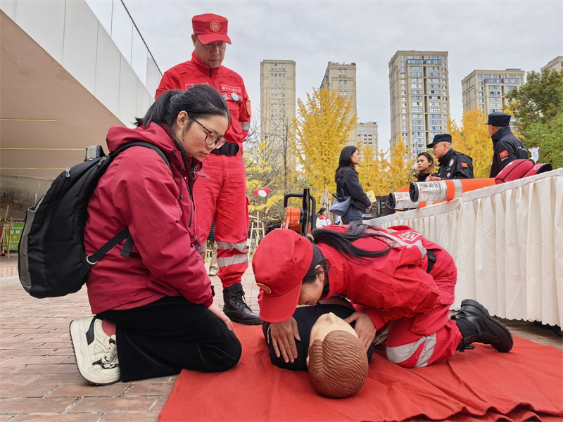 群众学习应急救援技巧。(罗园 摄)
