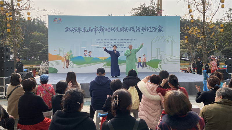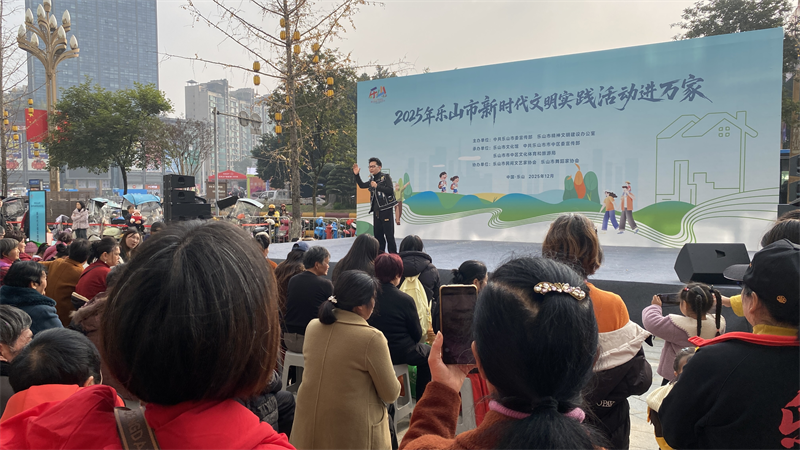 为深入推进乐山市文明城市建设工作,由中共乐山市委宣传部、乐山市精神文明建设办公室主办的“2025年乐山市新时代文明实践活动进万家”主题活动正在乐山市中心城区有序推进,2025年12月10日下午,第二场活动在乐山中心城区星悦荟(CBD广场)举行,丰富多彩的文艺演出、惠民服务和趣味活动吸引了众多市民参与。
