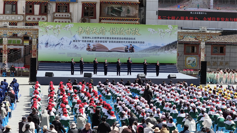 4月23日,康定市“书香润康定·阅享新征程”全民阅读新时代文明实践系列活动启动仪式在情歌广场举行,正式拉开活动大幕。现场氛围热烈浓郁,书香四溢,开场舞蹈《扇舞书韵》点燃激情,甘孜州人大常委会副主任仁青致辞发出全民阅读倡议,号召广大群众深耕书香文化、践行阅读风尚。千人经典诵读声声传韵、气势恢宏,多所学校、单位带来的诵读节目与文艺展演轮番上演,以文艺赋能阅读、以经典滋养心灵。同时,活动现场表彰“我的阅读故事”征文获奖选手,以榜样力量引领全民阅读新风尚,为阅读活动启动仪式画上精彩一笔。